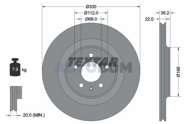 Диск гальмівний задній TEXTAR 92160303
