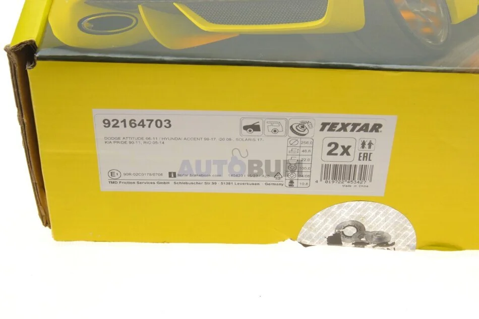 - TEXTAR 92164703 підходить до марок/моделей авто: