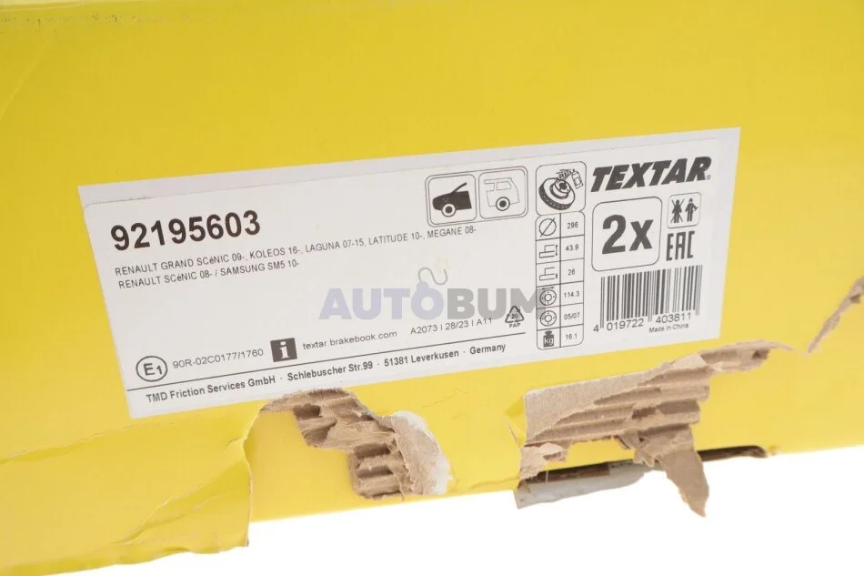 - TEXTAR 92195603 підходить до марок/моделей авто: