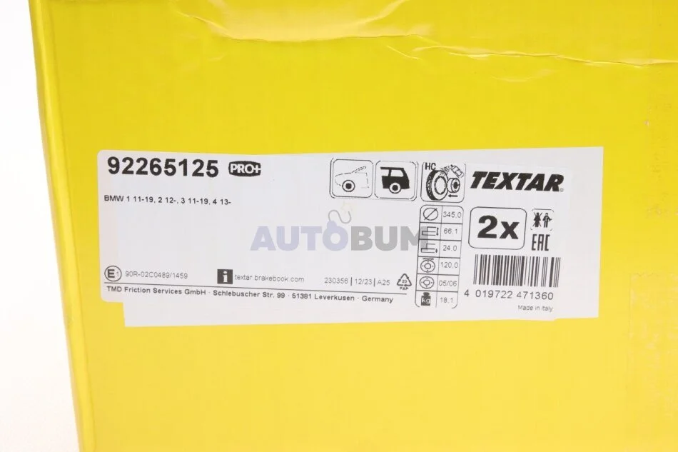 - TEXTAR 92265125 підходить до марок/моделей авто:
