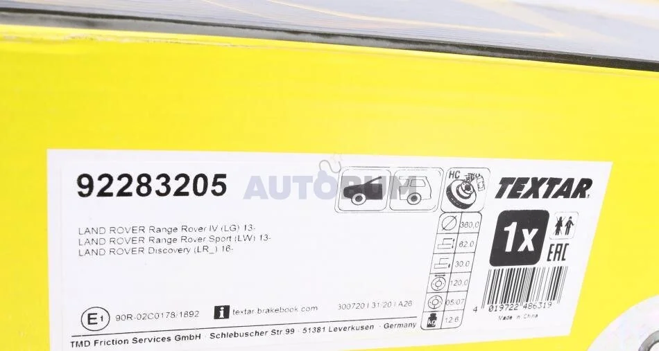 - TEXTAR 92283205 підходить до марок/моделей авто: