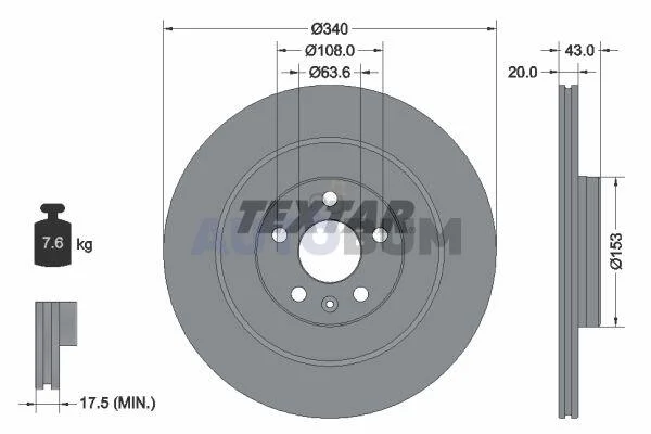 Диск гальмівний задн Лів/Прав VOLVO C40, EC40, EX40, XC40, XC90 II POLESTAR POLESTAR 2 2.0-Electric 09.14- TEXTAR 92304503