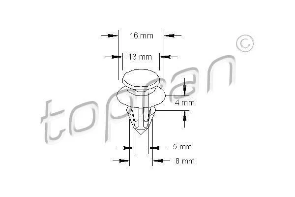 Пружинный зажим, Внутреннее пространство, 5, 8, белый TOPRAN / HANS PRIES 205 808