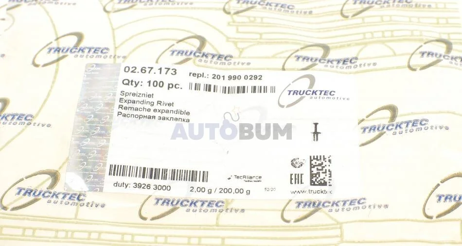 Кліпса кріплення облицювання TRUCKTEC 02.67.173