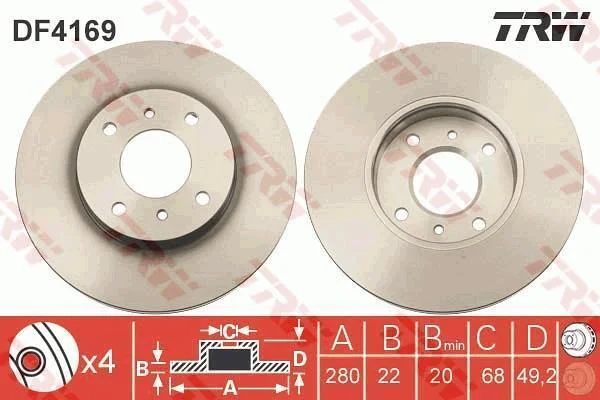 Диск гальмівний (1 шт.) NISSAN Almera/Primera/Primera Estate/Wagon TRW DF4169