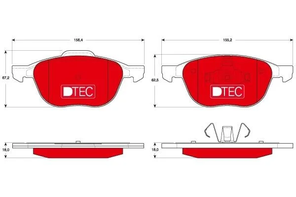 Керамічні гальмівні колодки передн, VOLVO C30, C70 II, S40 II, V40, V50 FORD C-MAX, C-MAX II, ECOSPORT, FOCUS C-MAX, FOCUS II, FOCUS III, FOCUS III/HATCHBACK, FOCUS III/KOMBI 1.0-Electric 10.03- TRW GDB1583DTE