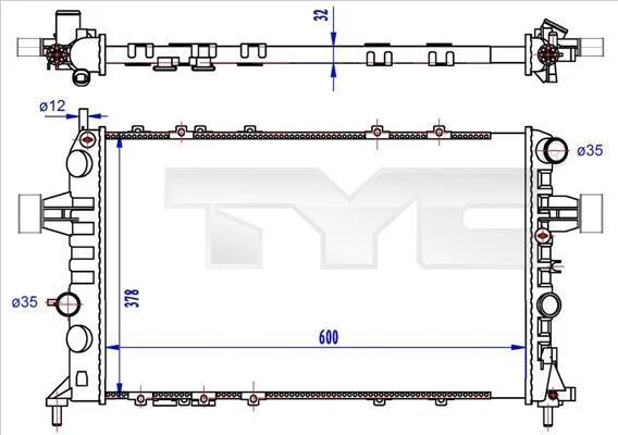 Радіатор, система охолодження двигуна TYC 725-0041-R