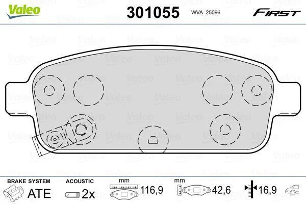 Гальмівні колодки дискові CHEVROLET/OPEL Cruze/Orlando/Volt/Ampera/AstraJ/Zafira "1,3-2,0 "R "09>> Valeo 301055