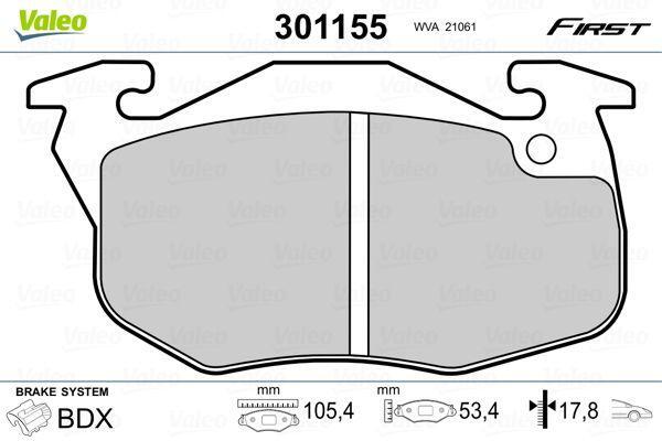 Комплект гальмівних накладок, дискове гальмо Valeo 301155