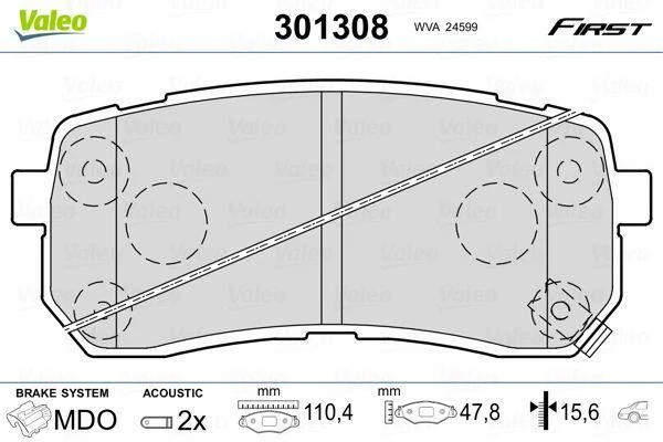Комплект гальмівних накладок, дискове гальмо Valeo 301308