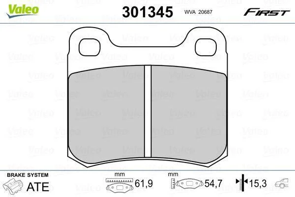 Комплект гальмівних накладок, дискове гальмо Valeo 301345