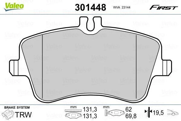 Комплект гальмівних накладок, дискове гальмо Valeo 301448