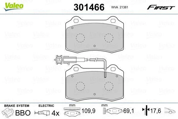 Комплект гальмівних накладок, дискове гальмо Valeo 301466