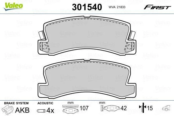 Гальмівні колодки, дискові Valeo 301540