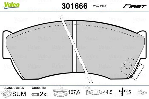 Комплект гальмівних накладок, дискове гальмо Valeo 301666