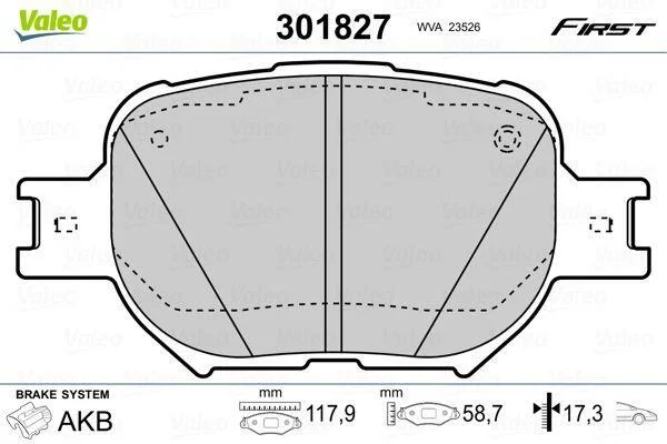 Комплект гальмівних накладок, дискове гальмо Valeo 301827