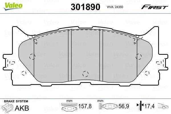 Гальмівні колодки дискові TOYOTA Camry "2,4-3,5 "F "06>> Valeo 301890