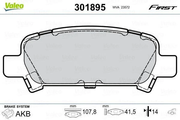 Комплект гальмівних накладок, дискове гальмо Valeo 301895