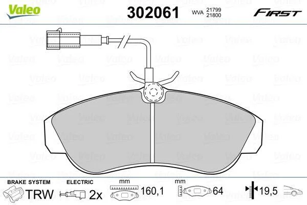 Комплект гальмівних накладок, дискове гальмо Valeo 302061