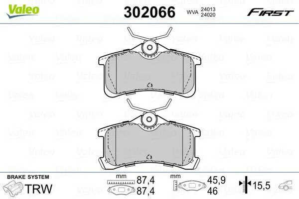 Комплект гальмівних накладок, дискове гальмо Valeo 302066