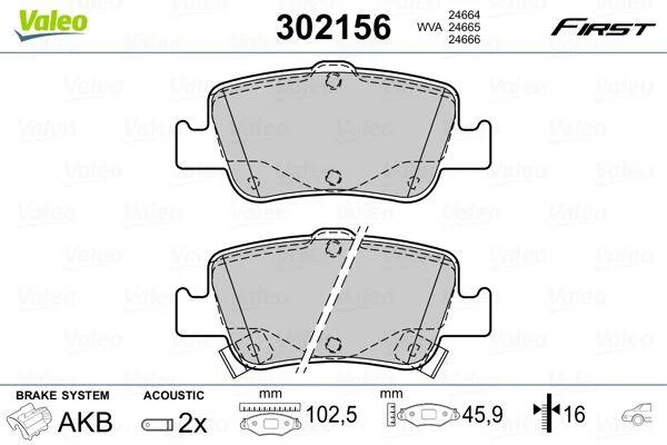 Комплект гальмівних накладок, дискове гальмо Valeo 302156
