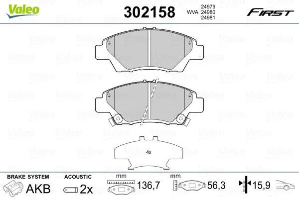 Гальмівні колодки дискові HONDA CR-Z/Jazz/Insight "1,2-1,5 "F "08>> Valeo 302158