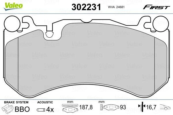 Комплект гальмівних накладок, дискове гальмо Valeo 302231
