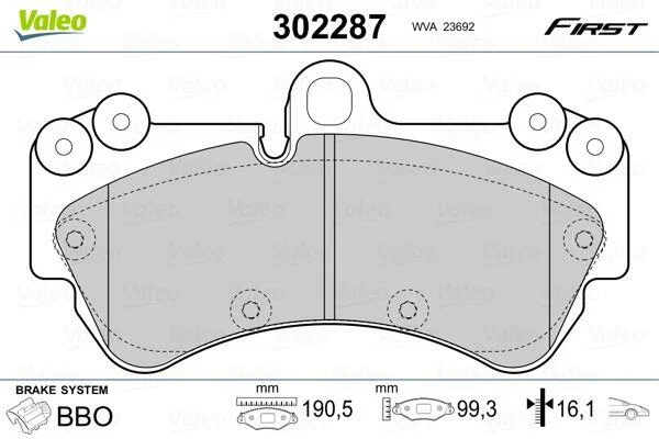 Комплект гальмівних накладок, дискове гальмо Valeo 302287