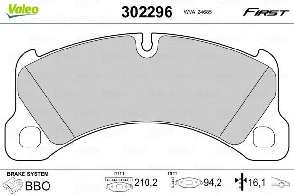Комплект гальмівних накладок, дискове гальмо Valeo 302296