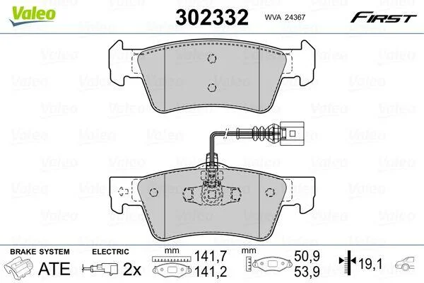 Комплект гальмівних накладок, дискове гальмо Valeo 302332
