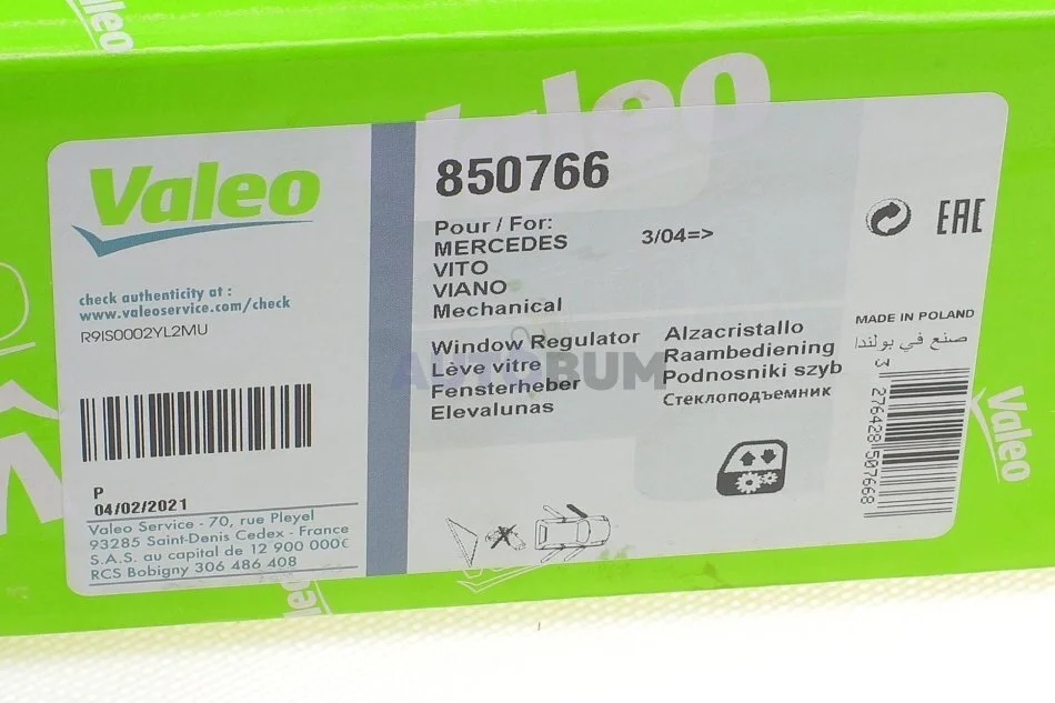 Склопідйомник Valeo 850766