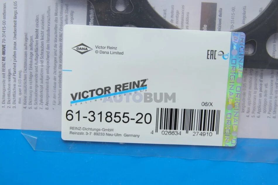 - VICTOR REINZ 61-31855-20 підходить до марок/моделей авто:
