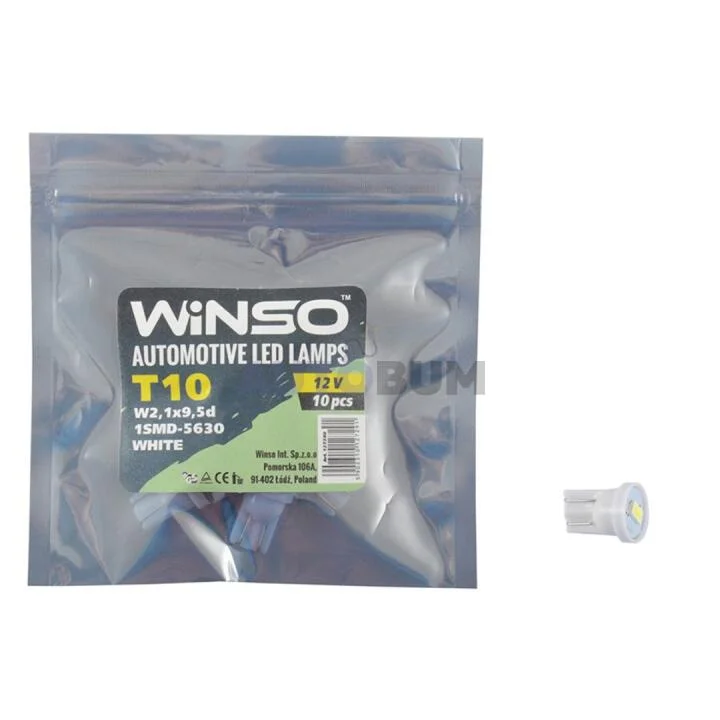 Лампи LED mini 12V SMD T10 W2.1x9.5d 1LED 5630 white 10шт.уп. WINSO 127290