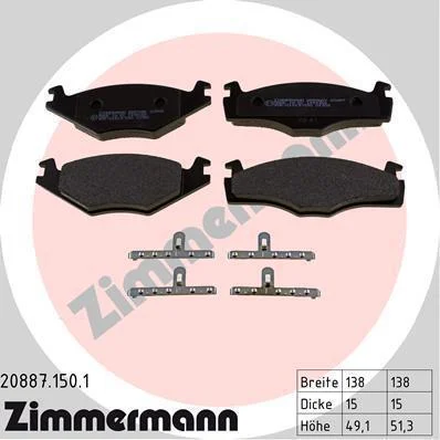 Комплект гальмівних накладок, дискове гальмо ZIMMERMANN 20887.150.1