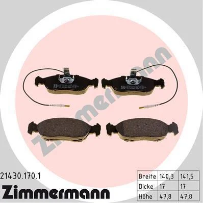 Комплект гальмівних накладок, дискове гальмо ZIMMERMANN 214301701