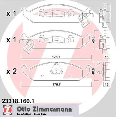 Комплект гальмівних накладок, дискове гальмо ZIMMERMANN 233181601