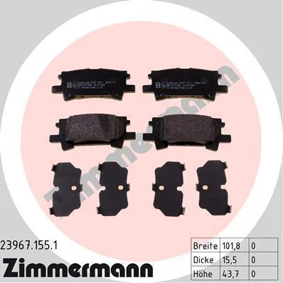 Комплект гальмівних накладок, дискове гальмо ZIMMERMANN 23967.155.1