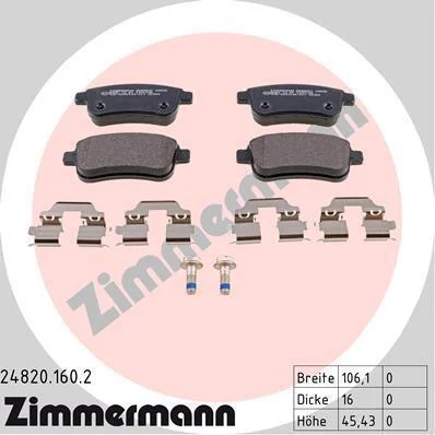 Комплект гальмівних накладок, дискове гальмо ZIMMERMANN 24820.160.2