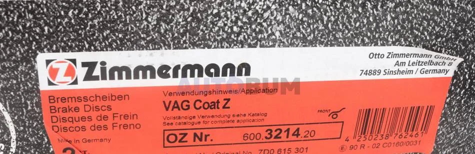 - ZIMMERMANN 600.3214.20 підходить до марок/моделей авто: