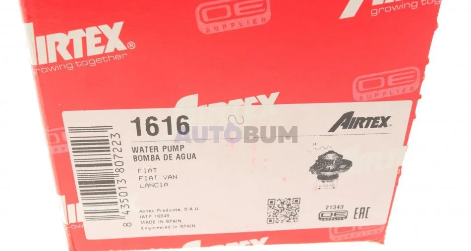 Насос водяний Fiat Doblo, Punto, Palio 1.2 96-> AIRTEX 1616