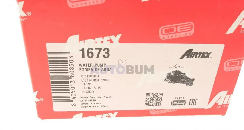 - AIRTEX 1673 подходит к маркам/моделям авто: