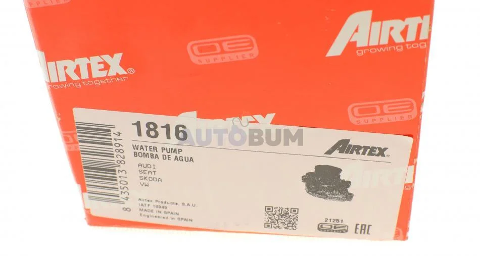 Водяний насос A1/A3/LEON/SUPERB/GOLF V, VI 1.4 TSI 07- AIRTEX 1816
