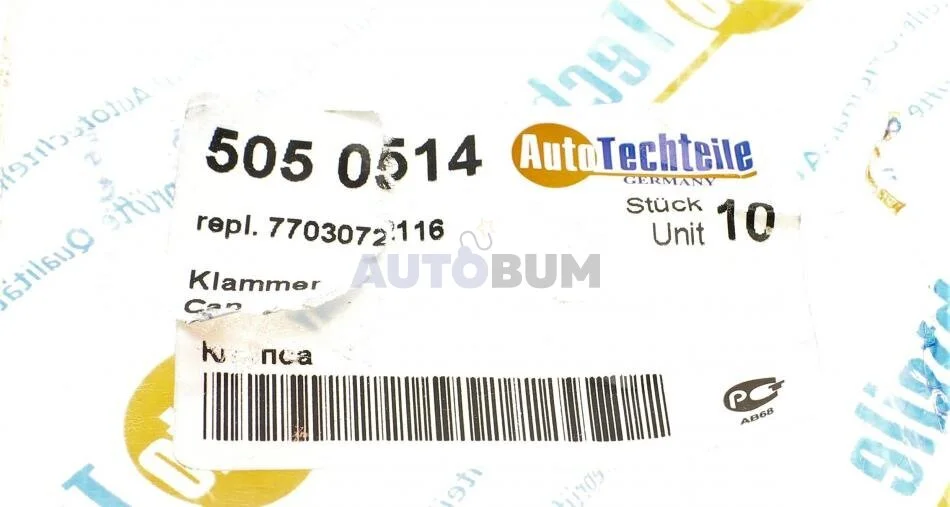 Клипсы крепл. накладок порогов, Renault - Peugeot - Citroen, (пластик) AUTOTECHTEILE 505 0514