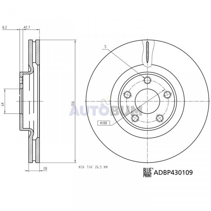 FORD Диск передній GALAXY III (CK) 2.0 EcoBlue BLUE PRINT ADBP430109
