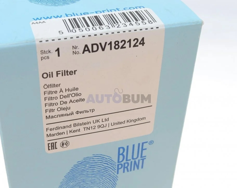 Фільтр масла з ущільнюючим кільцем BLUE PRINT ADV182124