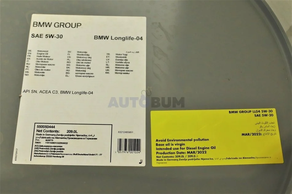 Олива моторна TwinPower Turbo Longlife-04 SAE 5W-30 (209 Liter) BMW 83212465851