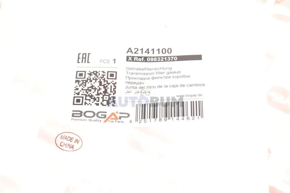 Прокладка оливного піддону АКПП BOGAP A2141100