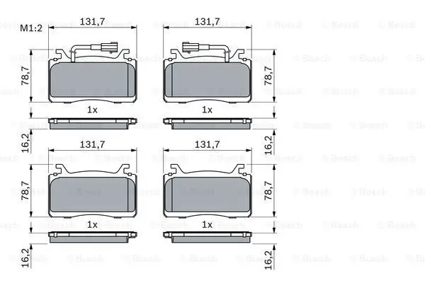 Комплект гальмівних накладок, дискове гальмо BOSCH 0986424851
