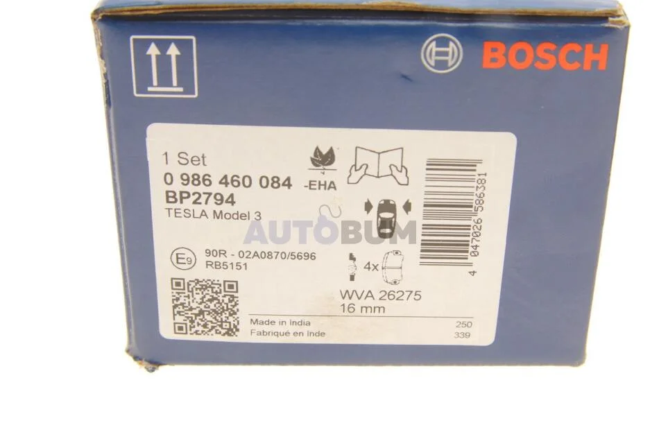 Колодки гальмівні дискові TESLA Model 3 "F "17>> BOSCH 0 986 460 084
