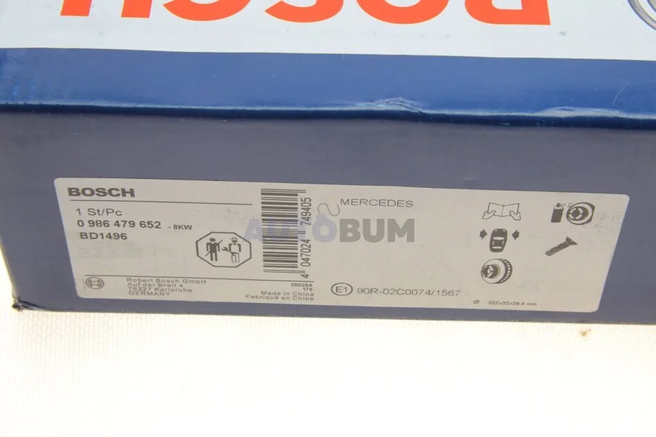 Диск тормозной MB C-E-class (W204 BOSCH 0 986 479 652